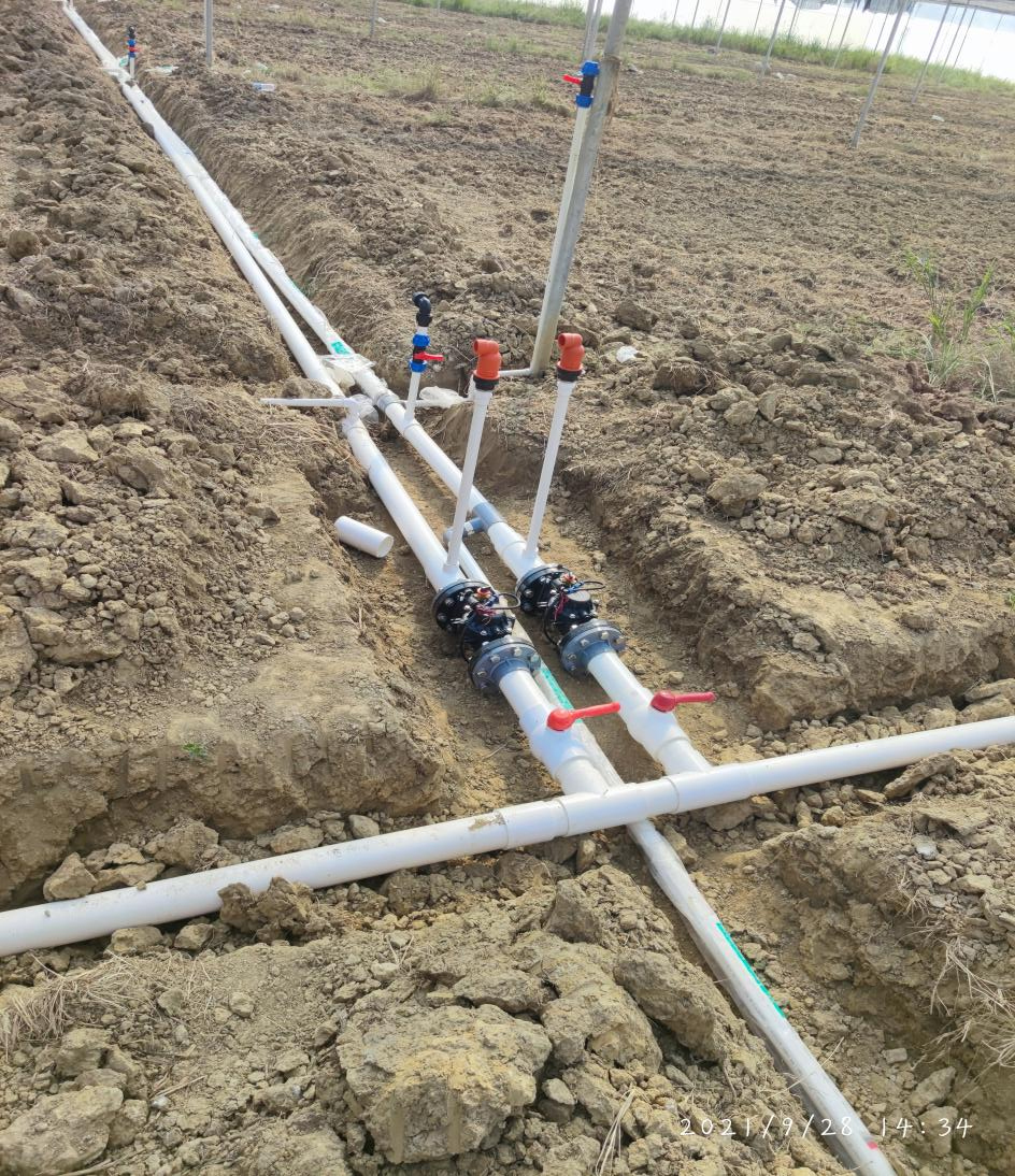 实施历程:自2021年8月起,从第一台设备进场历时两个多月,完成水肥一体化的泵房首部安装和田间的无线灌溉测试