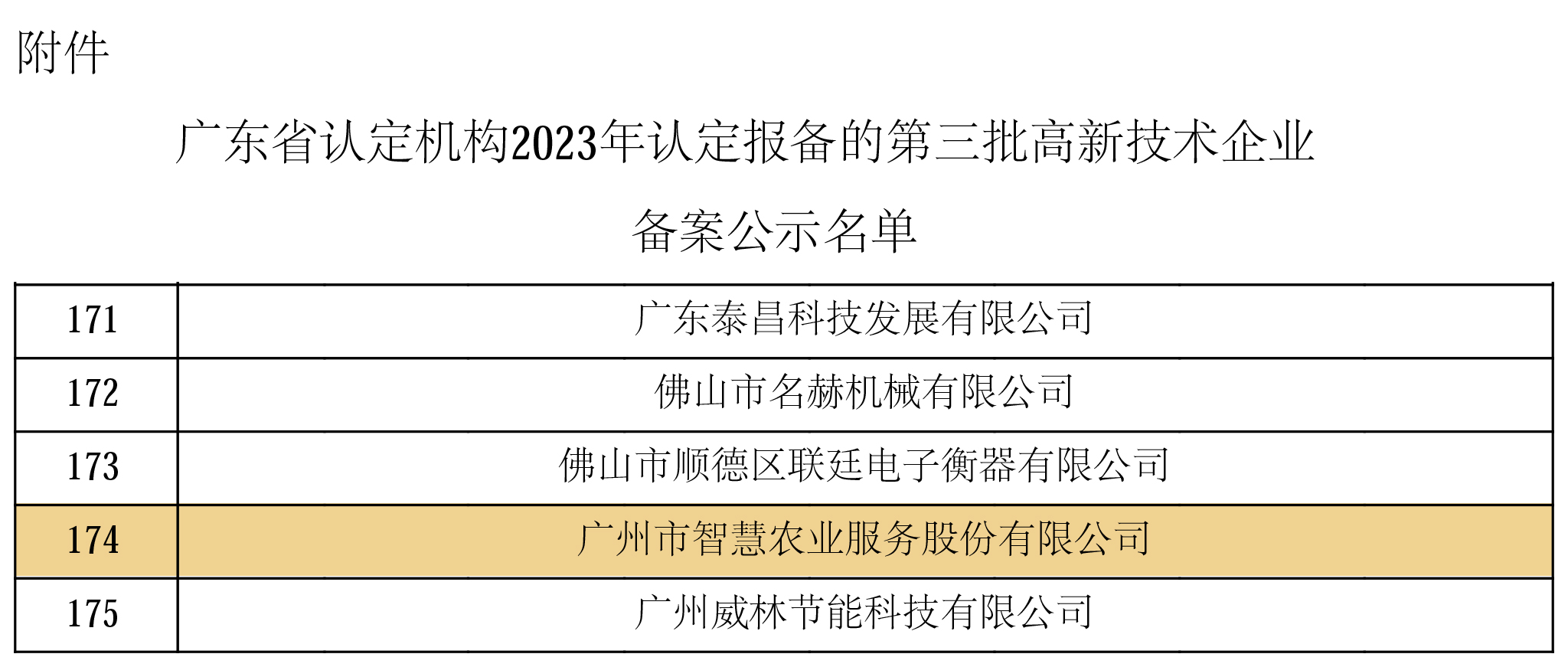 广州市智慧农业服务股份有限公司位列其中,这是自2017年首次参评国家高新技术企业以来的第三次入选。