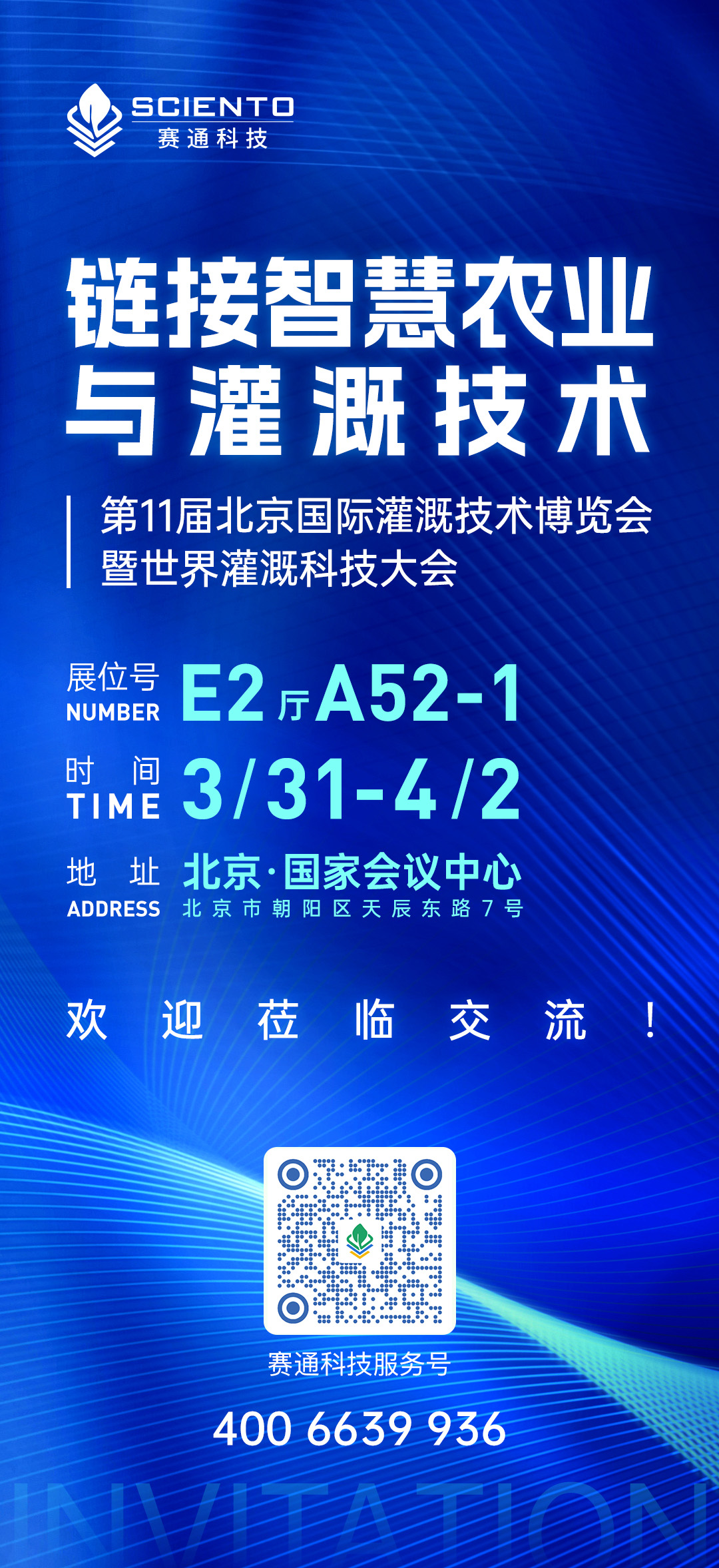 2025年3月31日-4月2日,第11届北京国际灌溉技术博览会暨世界灌溉科技大会将在北京国家会议中心盛大开幕,广州赛通科技有限公司将携最新技术与产品亮相E2厅A52-1展位,现诚邀您莅临现场,共同探讨数字科技如何助力灌溉农业高质量发展,开启无限可能。