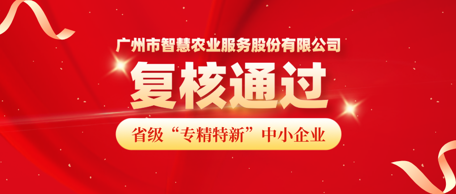 11月26日,广州市工业和信息化局正式公布2025年专精特新中小企业认定(复核)结果,广州市智慧农业服务股份有限公司凭借扎实的技术实力和良好的发展态势,成功通过复核,再次荣获省级“专精特新”中小企业资质。公司于2022年首次获评省级“专精特新”企业,本次顺利通过复核,标志着我们在专业化、创新化发展道路上再上新台阶。